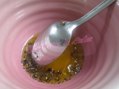 Dans un bol, mélanger l’huile d’olive avec le sel et le poivre
