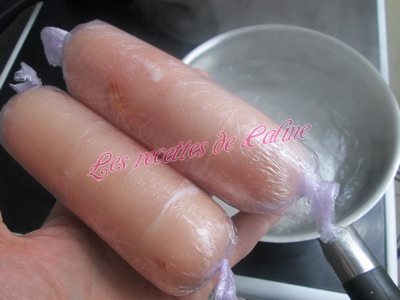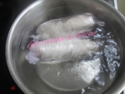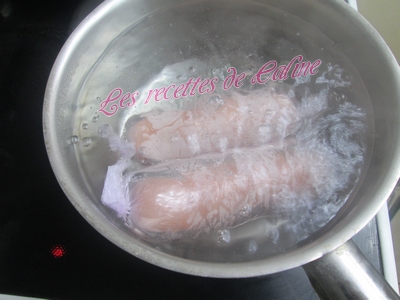Porter une casserole d’eau à ébullition, y plonger les escalopes roulées dans le film, laisser bouillir 12 minutes puis égoutter.