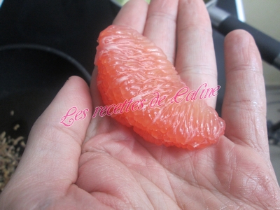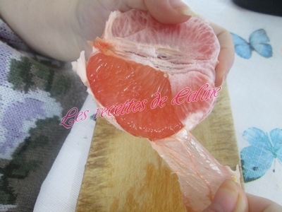 Éplucher à vif un pomélo, les tailler en suprêmes et les déposer sur du papier absorbant.