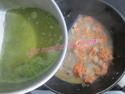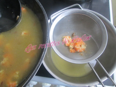 Ajouter les crevettes dans le bouillon, cuire 3 minutes.