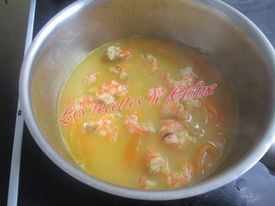 Commencer par préparer la nage : décortiquer les crevettes et les réserver au frais.