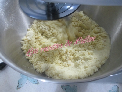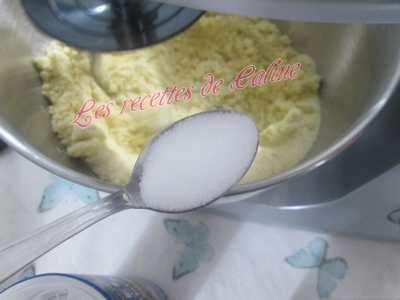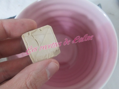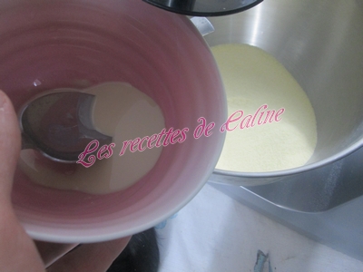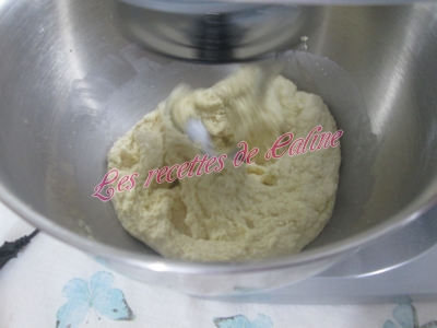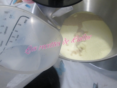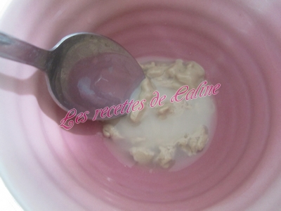 Mettre un peu d’eau tiède et commencée à mélanger avec une cuillère en bois ou une Maryse (pour ma part, je l’ai fait au robot, pour pas trop me fatiguer les mains)