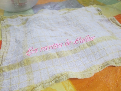 Remettre sur le coin du plan de travail et laisser reposer 10 min a couvert avec le linge.