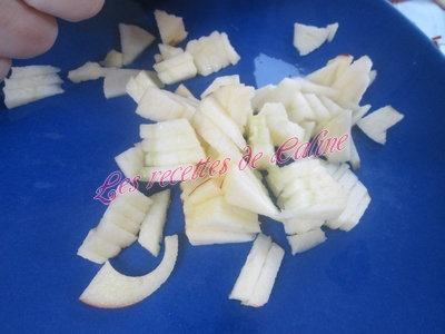 Pendant ce temps, éplucher les pommes et les couper en petits cubes. Les faire revenir à la poêle dans un peu de beurre jusqu’à obtenir des pommes bien fondantes.