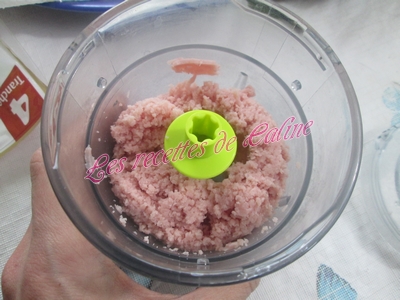 Couper les tranches de jambon en petits morceaux (vous pouvez aussi les mixer au robot).