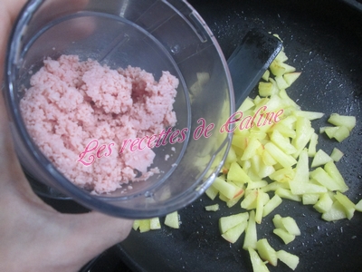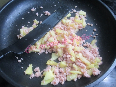 Mélanger le jambon haché avec les pommes et assaisonner (sel, poivre).
