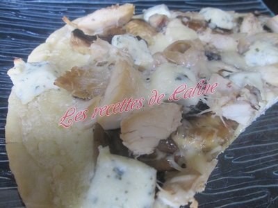 Déposer les lamelles de champignons puis les morceaux de poulet et finir avec les morceaux de Boursin