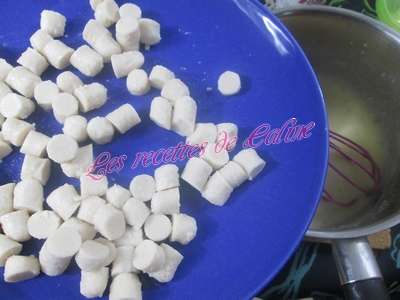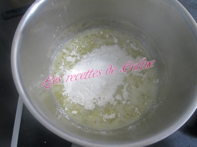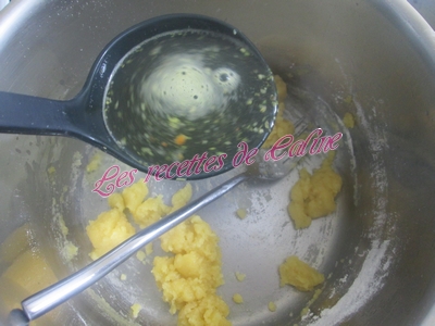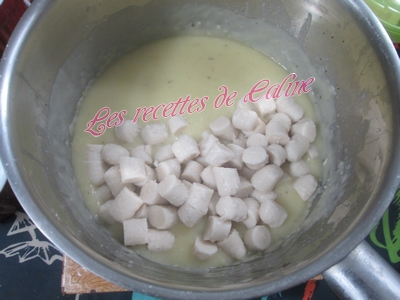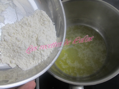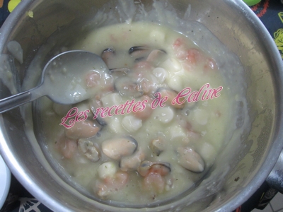 Préparer la sauce avec le beurre et la farine et verser petit à petit le fumet de poisson, bien mélanger. Il faut que la sauce ne soit ni trop liquide, ni trop épaisse.
