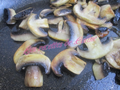 Eplucher et couper en lamelles les champignons. Faites les revenir dans le beurre de façon a ce que toute l’eau s’évapore