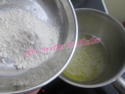 Préparer votre béchamel avec 60 g de beurre + 60 g de farine et pour ce qui est du lait, je mets au pif car il ne faut pas que la sauce soit trop épaisse ni trop liquide