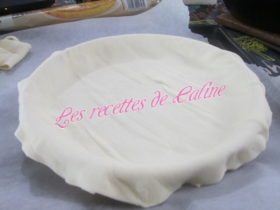Etaler la pâte dans une tourtière, piquer légèrement la pâte,
