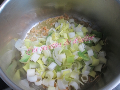 Ajouter les poireaux et l’oignon.