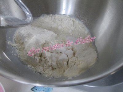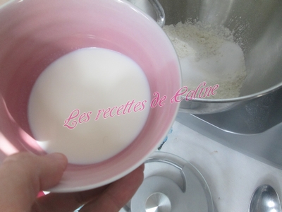 Mélangez 2 minutes, vitesse lente avec le crochet puis incorporer le lait tiède.