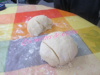 Pétrir vitesse moyenne puis rapide jusqu’à obtenir une boule de pâte qui se détache des parois environ 5 minutes.(Ou pétrir le tout à la main)