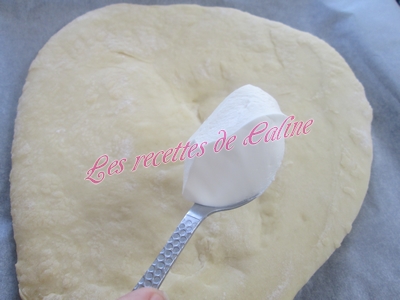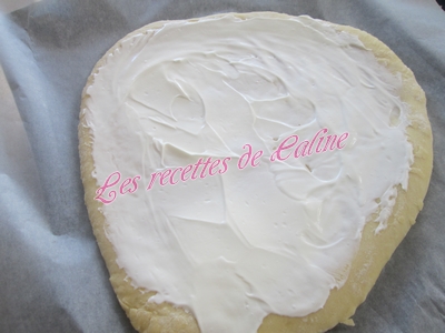 Verser la crème fraîche sur la pâte et bien l’étaler.