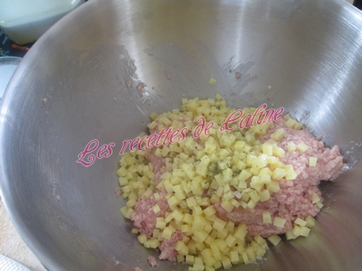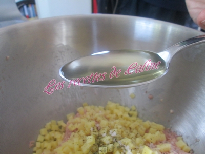Pour cette recette j’avais acheté 2 kg de cuisses de poulet que j’ai décortiqué entièrement, afin de récupérer la chair et la peau, qui va servir afin de faire un peu de gras dans la viande, une fois la viande hachée j’avais environ 1 kg 7 de viande que j’ai séparé en 2, vu que j’ai fait 2 recettes en même temps, celle-ci et des saucisses de poulet au chèvre et piment d’Espelette, qui sera publiée dès demain