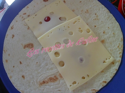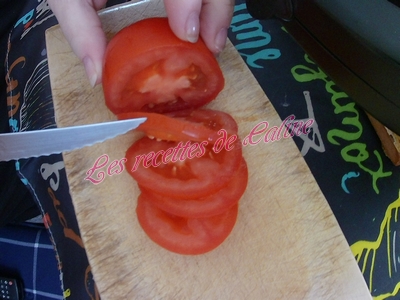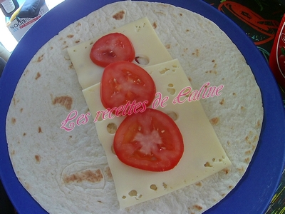 Découper en fines rondelles la tomates et disposer 2 à 3 rondelles sur chaque tortillas