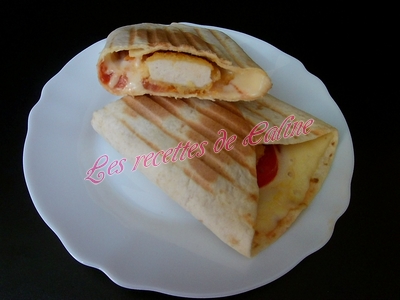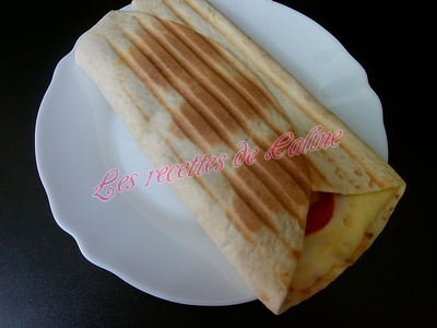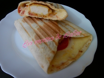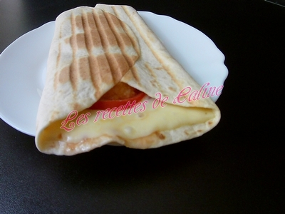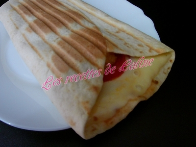 Enroulez les tortillas ou repliez-les sur elles-mêmes en portefeuille et le cuire à l’appareil à panini ou au grill viandes