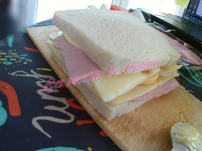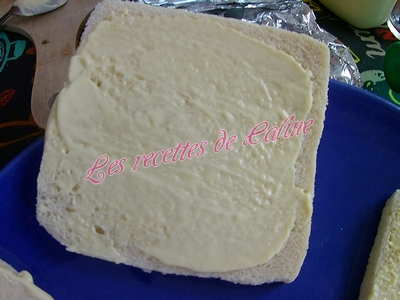 Tartiner 2 tranches de pain de mie de mayonnaise.