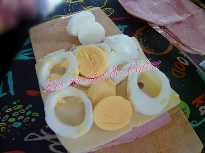 Couper les oeufs en rondelles et disposez-les sur l’emmental.