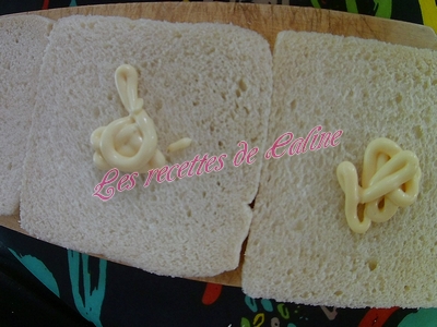 Tartiner 2 tranches de pain de mie de mayonnaise.