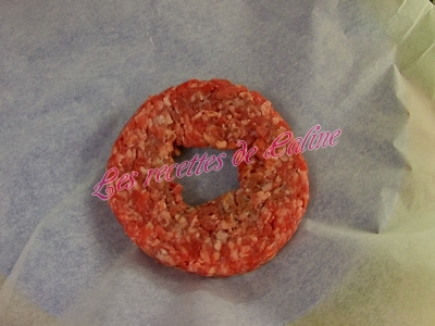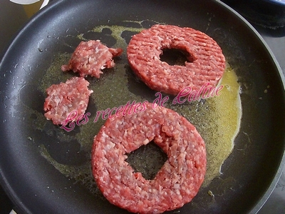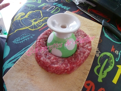A l’aide d’un petit verre ou d’un coquetier, faire un petit trou dans chacun des steaks hachés