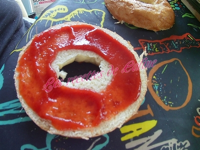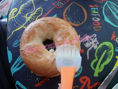 Badigeonner légèrement chaque bagel avec une pointe d’eau