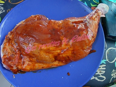 A l’aide d’un pinceau alimentaire ou une cuillère a soupe, badigeonner la cuisse de la sauce marinade.