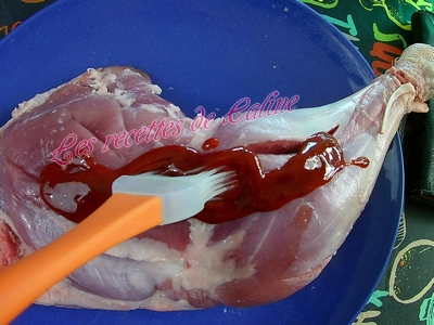 A l’aide d’un pinceau alimentaire ou une cuillère a soupe, badigeonner la cuisse de la sauce marinade.