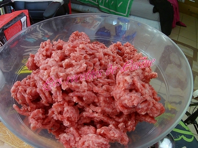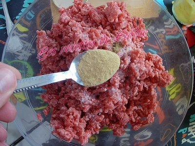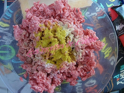 Dans un saladier, mélanger la viande hachée avec toutes les épices