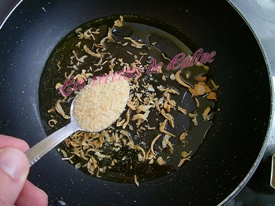 Faire chauffer 1 cuillère à soupe d’huile dans une poêle et faire fondre l’oignon et l’ail.