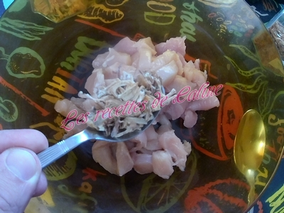 Couper le blanc de poulet en morceaux.