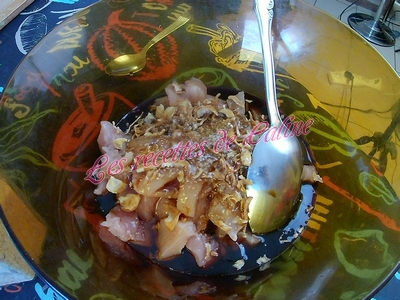 Mélanger le gingembre, l’ail, l’huile de sésame, la sauce soja et l’échalote avec la viande. Laisser tout une nuit au