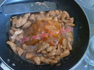 Chauffer le wok avec un peut d’huile de sésame ajoutez votre viande faites les dorer, ajoutez l’oignon. Quand la viande est bien cuit ajouter la confiture laisser caraméliser et servez avec du riz Thaï ou basmati.