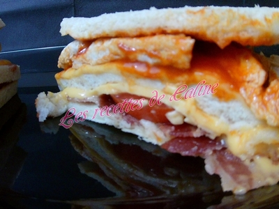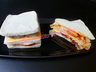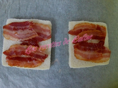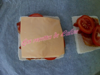 Sur 4 tranches de pains, répartissez le bacon, puis les tomates et terminer par une tranche de cheddar.
