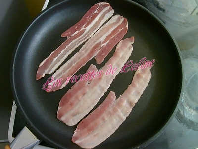 Dans une poêle, faites dorer les blancs de poulet dans le beurre 2 min par face puis faites dorer le bacon 1 min par face.