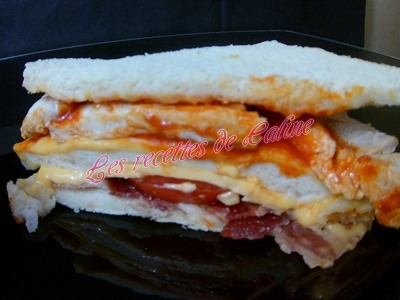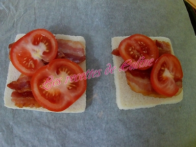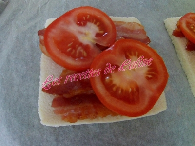 Sur 4 tranches de pains, répartissez le bacon, puis les tomates et terminer par une tranche de cheddar.