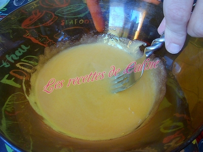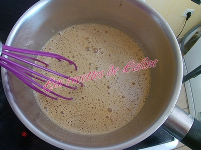 Versez progressivement cette préparation sur le mélange jaunes + sucre en mélangeant au fouet.
