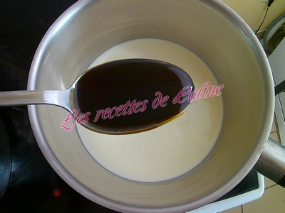Faire chauffer la crème dans une casserole. Y ajouter 4 cuil à soupe de sirop de café. Retirer du feu.