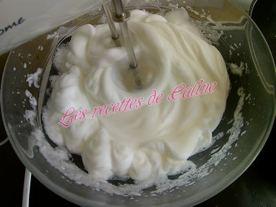 Monter les blancs avec la pincée de sel. Vous pouvez ajouter une cuillère à soupe de sucre vers la fin pour les raffermir plus.***