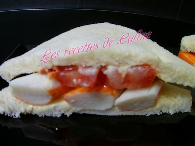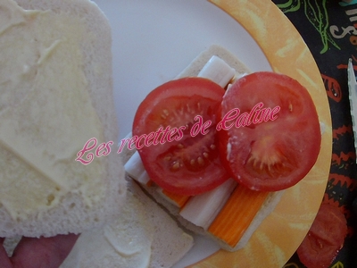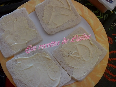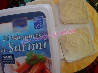 Déposer 4 bâtonnets de surimi sur la 1ere tranche de pain avec la mayonnaise