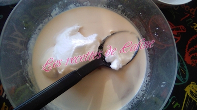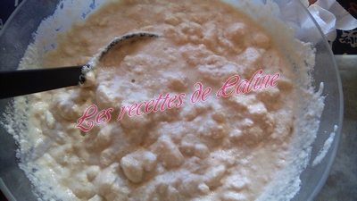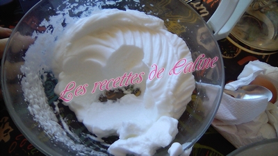 Dans un autre bol, monter les blancs en neige avec une pincée de sel. Incorporez-les grossièrement à la préparation précédente : des grumeaux doivent encore flotter à la surface