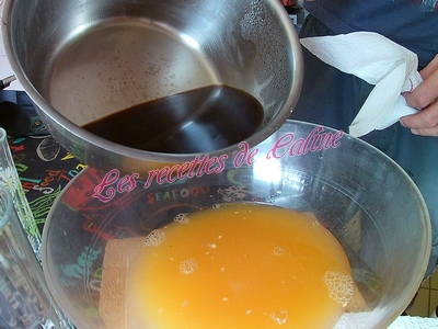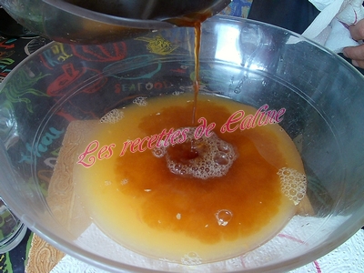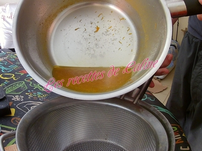 À feu doux, faites bouillir le mélange pendant 5 minutes. Filtrer le sirop obtenu et laisser refroidir.