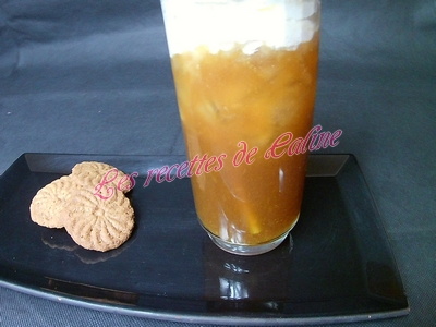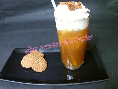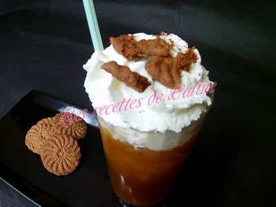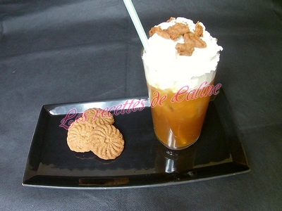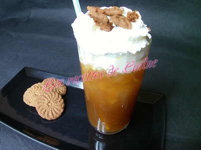 Verser la boisson dans un verre avec des glaçons, ajouter la crème fouettée et décorer avec les spéculoos émietté