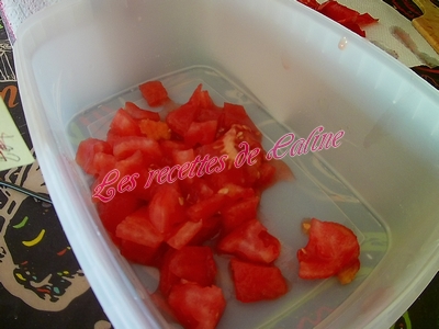 Ébouillanter, peler, épépiner et concasser les tomates.