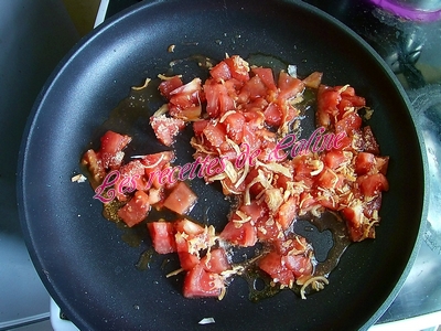 Ajouter les tomates, l’ail et les oignons. Laisser cuire pendant 10 min en remuant.