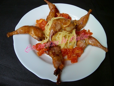 Remettre les petites cuisses de caille et laisser mijoter a feu très doux pendant le temps de cuisson des pâtes