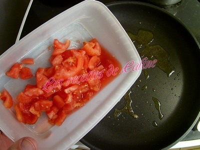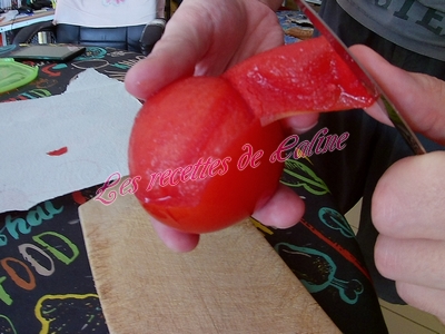 Ébouillanter, peler, épépiner et concasser les tomates.