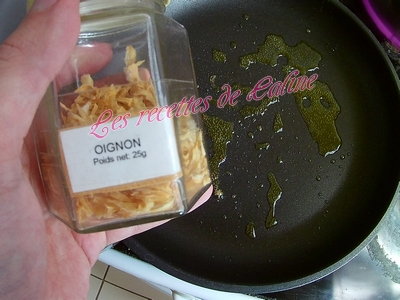 Pelez et hachez l’oignon et l’ail (Pour ma part, je passe à l’étape suivante vu que j’utilise de l’oignon séché ainsi que de l’ail semoule).