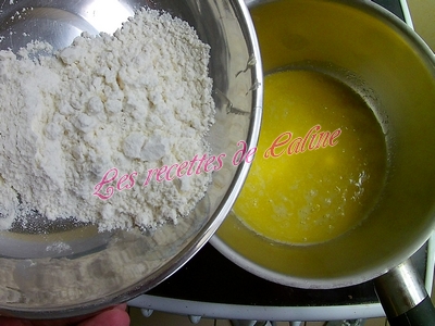 Préparer la béchamel : faites fondre le beurre dans une casserole, et ajouter la farine d’un coup. Mélanger au fouet.